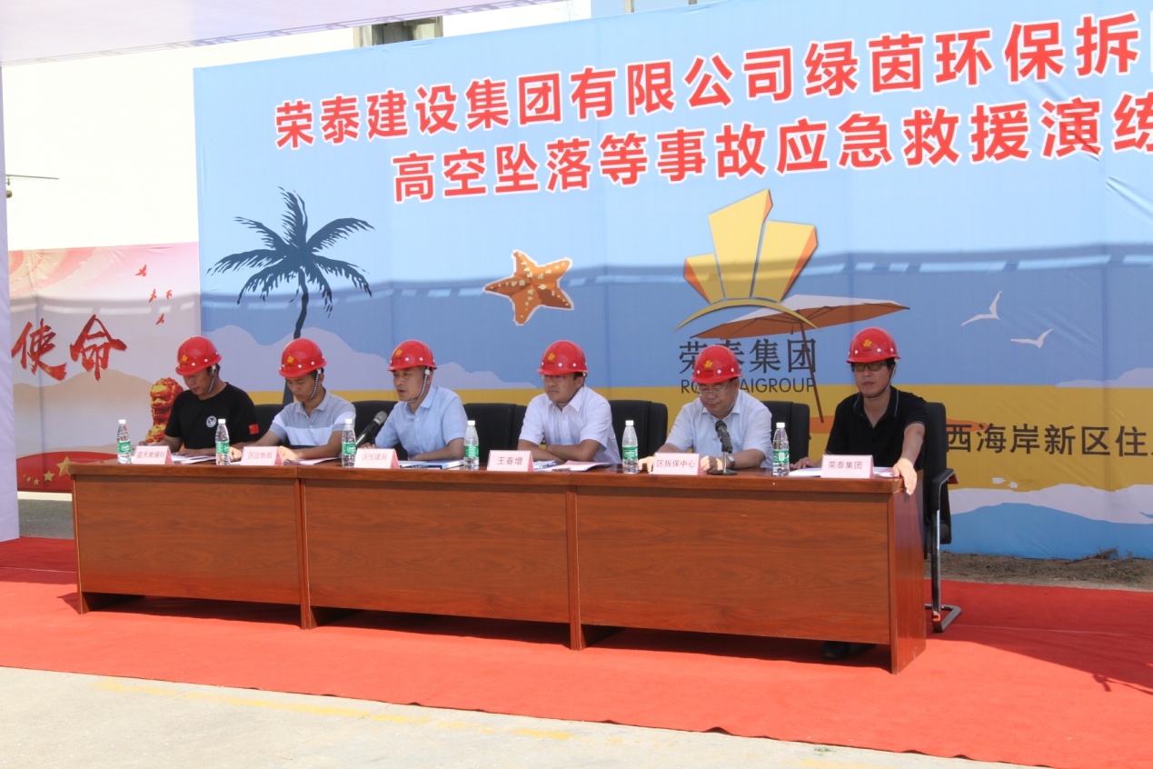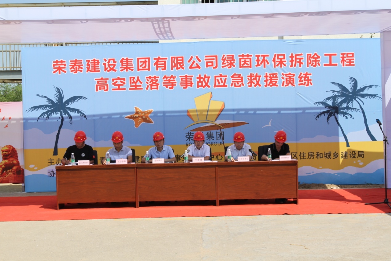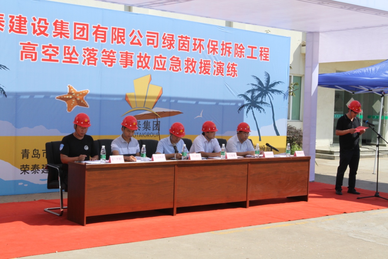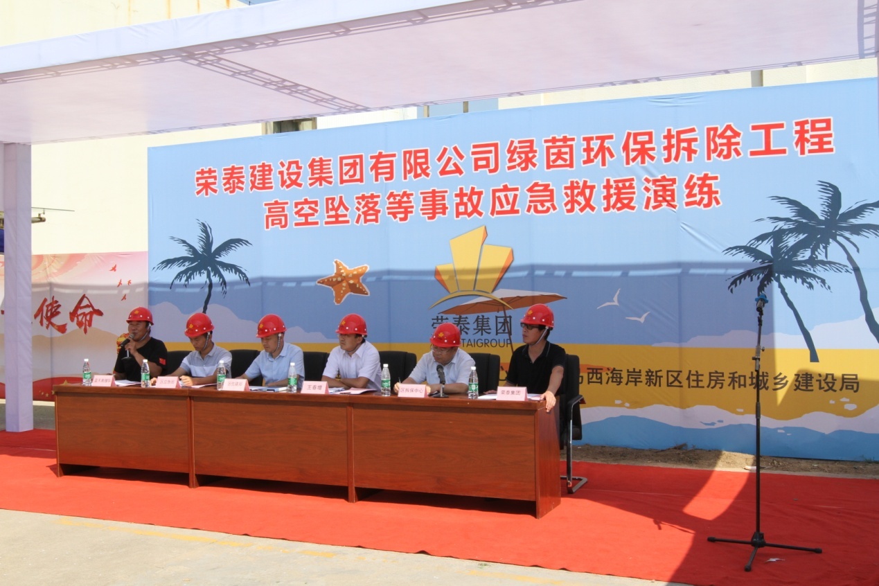 8月20日上午,由青島市住建局房地產(chǎn)事業(yè)發(fā)展中心、青島西海岸新區(qū)住房和城鄉(xiāng)建設(shè)局主辦,榮泰建設(shè)集團有限公司承辦的“綠茵環(huán)保拆除工程高空墜落等事故應(yīng)急救援演練”活動在西海岸西區(qū)順利舉行。青島市住建局房地產(chǎn)事業(yè)發(fā)展中心處長王春增同志、青島西海岸新區(qū)住房和城鄉(xiāng)建設(shè)局黨委書記、區(qū)拆遷保障服務(wù)中心主任薛紅專同志、區(qū)應(yīng)急局、藍天救援隊、榮泰建設(shè)集團有關(guān)領(lǐng)導(dǎo)出席演練活動,西海岸新區(qū)各建筑單位、監(jiān)理單位、施工企業(yè)代表等200余人觀摩了演練活動。