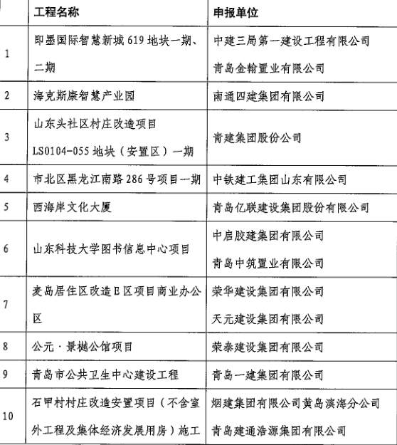 根據(jù)《關(guān)于組織申報(bào)青島市智慧建造科技示范工程的通知》(青建辦宇C2020D90號)要求,市住房城鄉(xiāng)建設(shè)局組織專家對各單位申報(bào)工程進(jìn)行了現(xiàn)場審核、答辯評審,確定2020年度青島市智慧建造科技示范工程10個(gè),現(xiàn)予以公布。