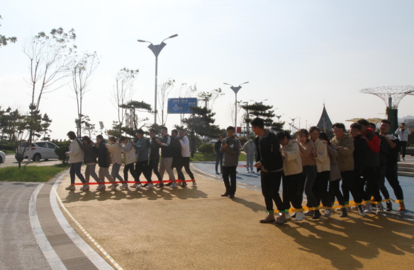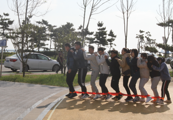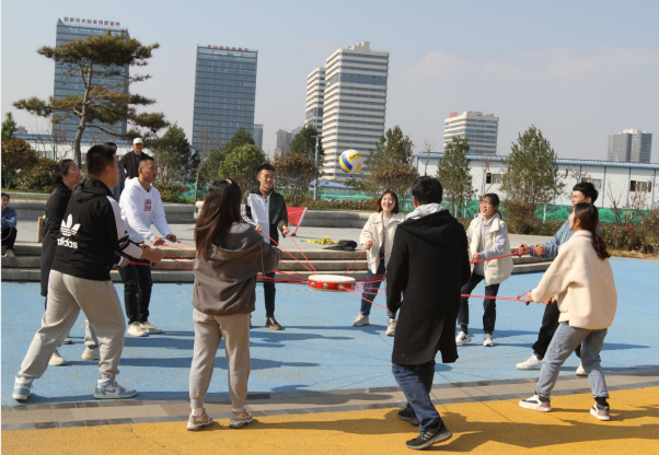 活動(dòng)在活潑歡快的音樂(lè)中拉開了序幕,“摸石過(guò)橋”“不倒森林”“同心擊鼓”“巨人腳步”······這些創(chuàng)意有趣的互動(dòng)環(huán)節(jié),迅速打破了青年員工的隔閡,搭建起互相認(rèn)識(shí)、溝通的橋梁。