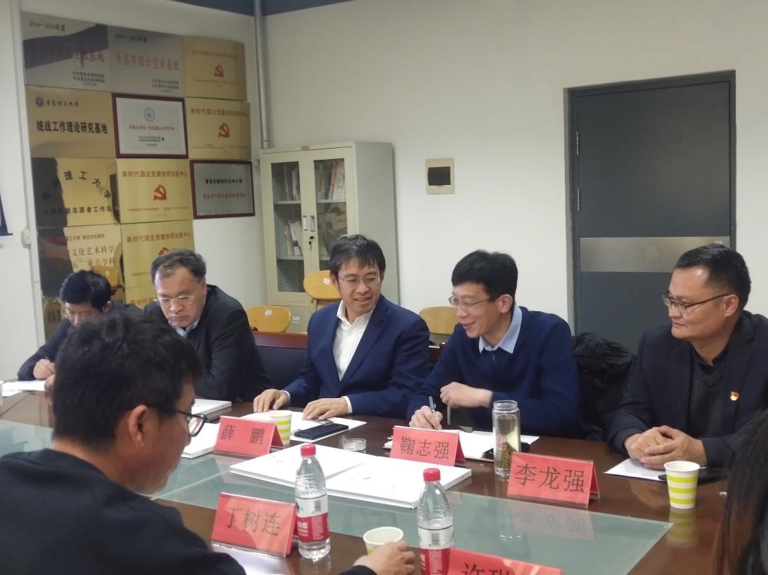 12月16日下午,集團(tuán)董事長薛鵬拜訪青島理工大學(xué),與馬克思主義學(xué)院王菁華書記、理工大學(xué)合作發(fā)展處鞠志強(qiáng)處長、馬克思主義學(xué)院李龍強(qiáng)副院長、沙洪成教授、劉先勇高級(jí)講師、合作發(fā)展處張?zhí)靷ダ蠋煹染托F髴?zhàn)略合作進(jìn)行了溝通、洽談。
