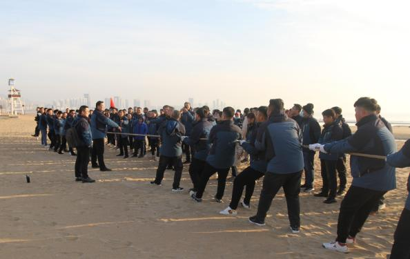 為活愉悅身心鼓舞士氣,增強團隊凝聚力,一場別樣的拔河比賽在沙灘上火熱展開。比賽過程中,全體隊員眾志成城,步調(diào)一致,助陣隊員熱情高漲、吶喊助威,聲音此起彼伏,口號聲、加油聲,呼喊聲響徹了沙灘。