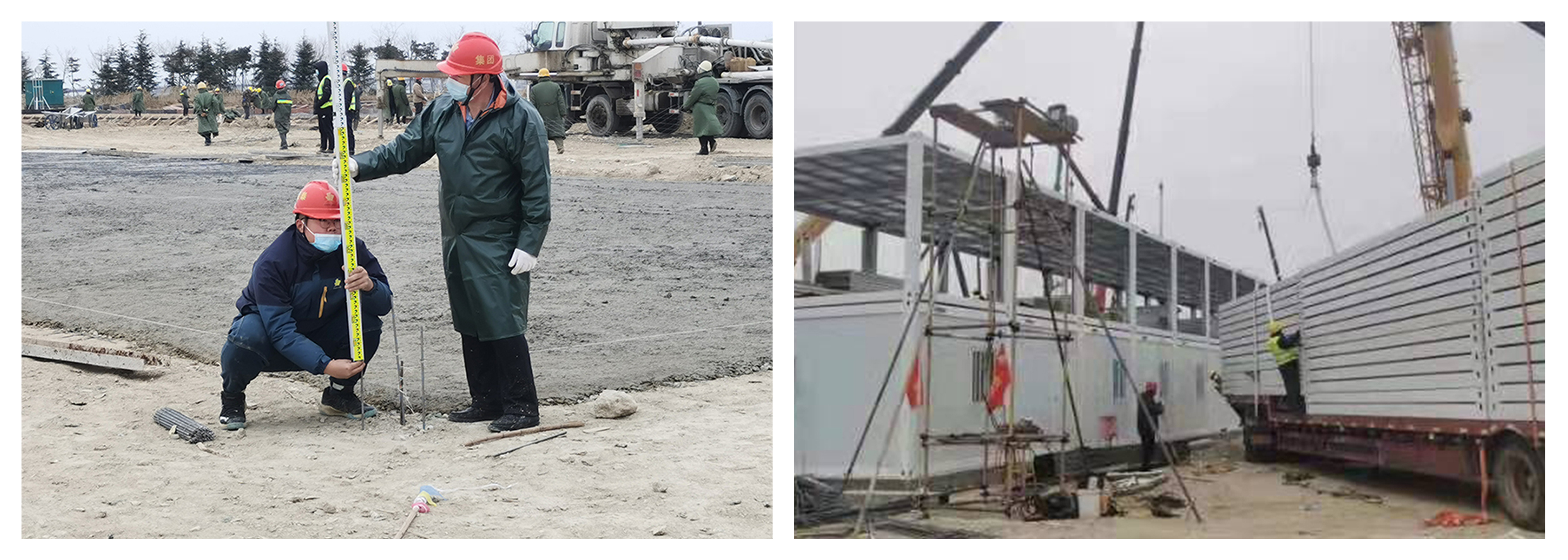 健康驛站項目采用模塊化施工,再將施工方案細(xì)化分工,各種工序作業(yè)穿插進(jìn)行,加快推進(jìn)施工進(jìn)度。3月16日,完成場平建設(shè)及筏板混凝土澆筑,3月17日,室內(nèi)給排水道路開始安裝,3月21日,完成隔離箱的拼裝作業(yè),3月27日,開始推進(jìn)綠化、圍擋、路面建設(shè),3月28日,完成管網(wǎng)鋪設(shè)并與室內(nèi)聯(lián)通。