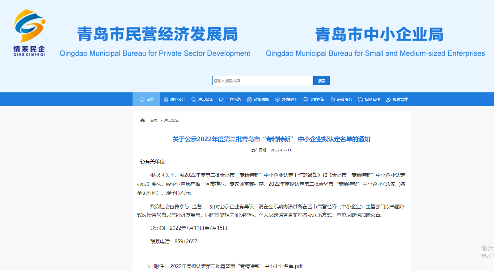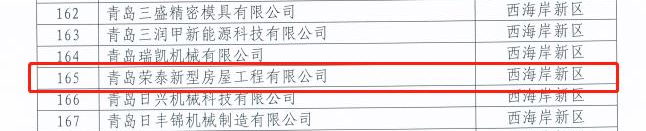 不久前,青島市民營經濟發(fā)展局公布了2022年度第二批青島市“專精特新”中小企業(yè)擬認定名單。青島榮泰新型房屋工程有限公司(簡稱榮泰鋼結構公司)獲批成為青島市“專精特新”中小企業(yè)。這是繼榮泰建材公司獲批認定后,榮泰集團獲批的又一創(chuàng)新體系重要組成部分。